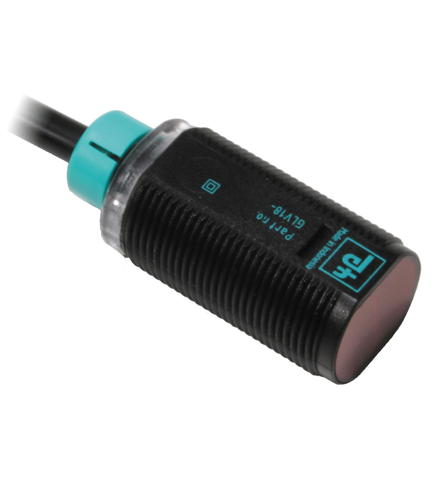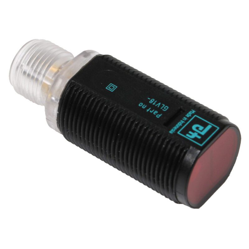 Efficient Line in a short M18 plastic housing for standard applications | Very high detection range | 4 LEDs indicator for 360° visibility | Optimized potentiometer design for a clear control button layout in the application | Version with front optical face | DC voltage version